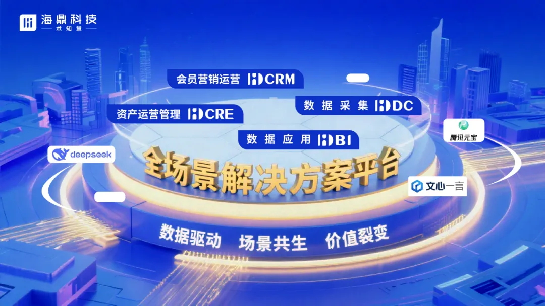 海鼎科技自主研发的数智化全场景解决方案平台,在整合DeepSeek、腾讯元宝、文心一言等主流AI大模型的同时,结合海鼎科技智慧商业知识体系匹配调整,精准度较通用模型提升30%,为资产运营管理(HDCRE)、会员营销运营(HDCRM)、数据应用(HDBI)、数据采集(HDDC)等核心产品方案注入“AI智脑”支撑,推动商业地产从传统空间租赁管理模式向“数据驱动、场景共生、价值裂变”智慧生态进化。