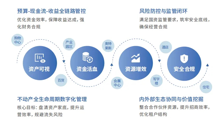 当下商业地产行业,资产管理正处于深度变革的关键时期。资产的复杂性与分散性加剧了统筹难度,资金在预算、现金与收益全链路的流转效率也成为制约企业利润的关键,资源整合的低效与生态割裂则在阻碍价值释放,合规与风控的严格要求更是让企业如履薄冰。在这样的大背景下,传统资产管理模式已难以适配行业发展需求,创新突破迫在眉睫。