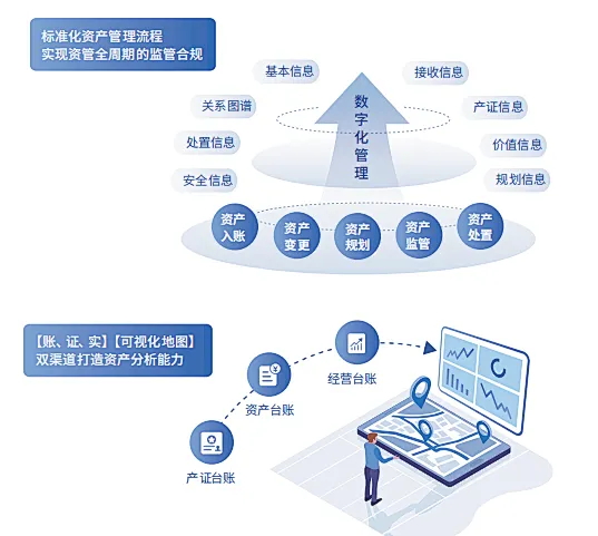 通过不动产全生命周期数字化管理,方案帮助企业理顺资产家底,让资产地图清晰可视,让资产的运营效率得到显著提升,同时有效规避风险,就像给商业地产资产装上了 “导航、监控系统”。同时,项目资产入账、变更、规划、处置……全流程清晰可视,实现了资产全周期的监管合规。而且,“账、证、实” “可视化地图”的打造,更是双维提升了资产分析能力,让资产状况一目了然。