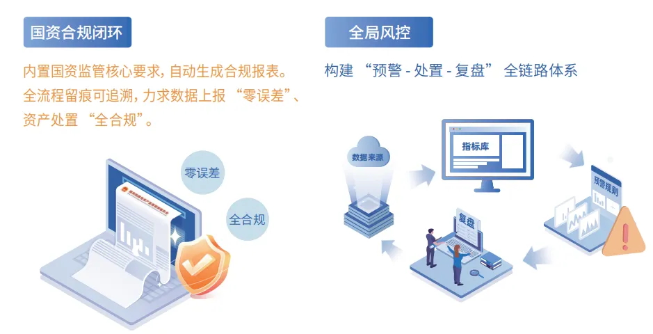 合规与风控是资产管理的底线。方案以筑牢资产防线为目标,构建全局风控体系。内置国资监管核心要求,能自动生成合规报表,全流程留痕可追溯,力求做到资产上 “零误差”、资产处置 “全合规”。同时,构建 “预警 - 处置 - 复盘” 全链路体系,为商业地产资产安全保驾护航,让企业在合规的轨道上稳健运营。