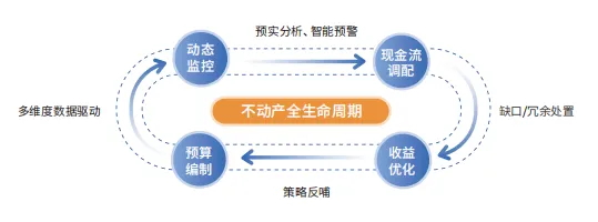 在资金管理方面,方案实现了预算 - 现金 - 收益的全链路管控。从预算的制定、分解,到现金的预测、监控,再到收益的优化,环环相扣。